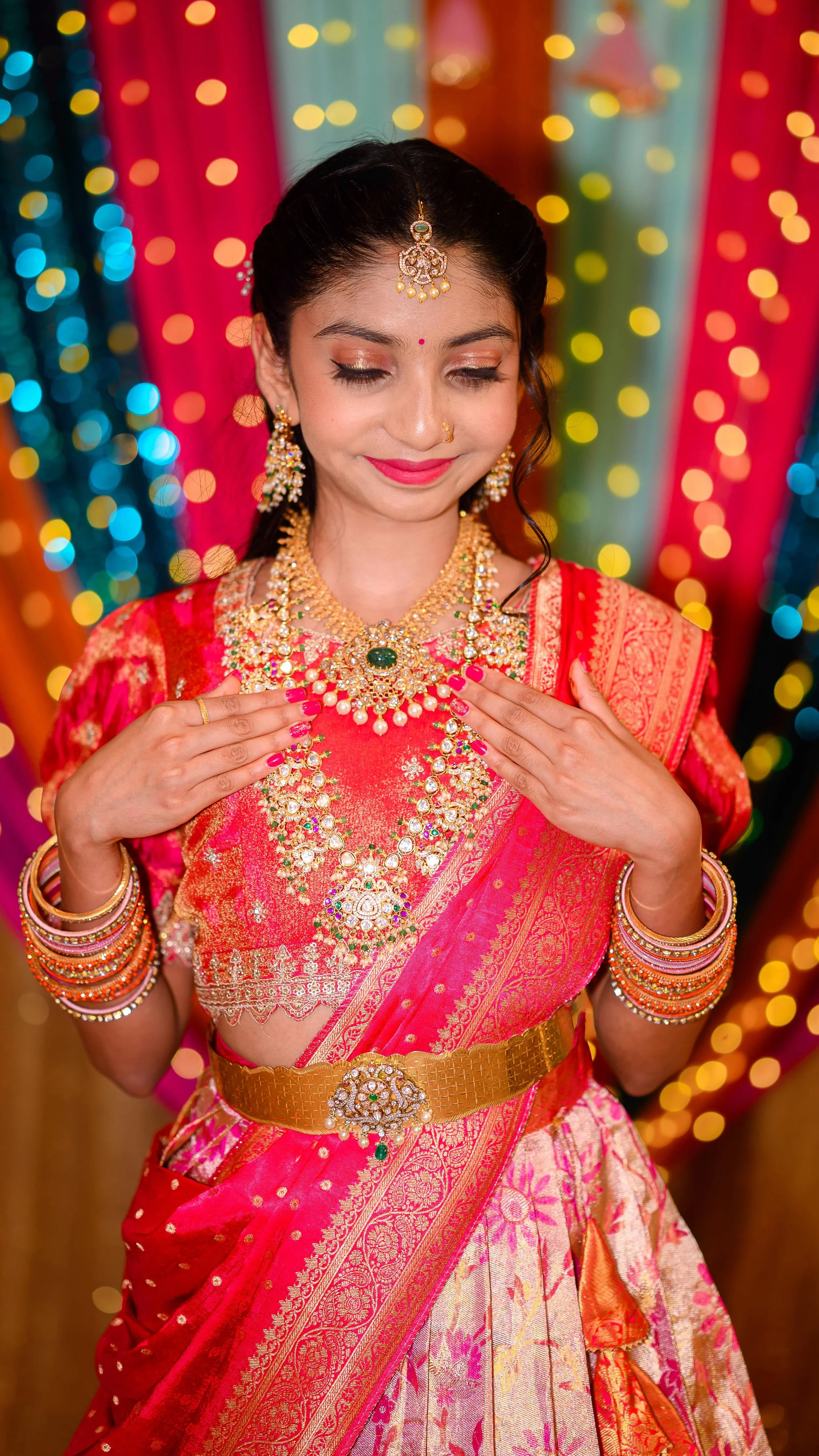 Elegance meets tradition in our half saree photoshoots. We'll capture the grace and charm of this cultural attire, creating images that reflect its timeless appeal.